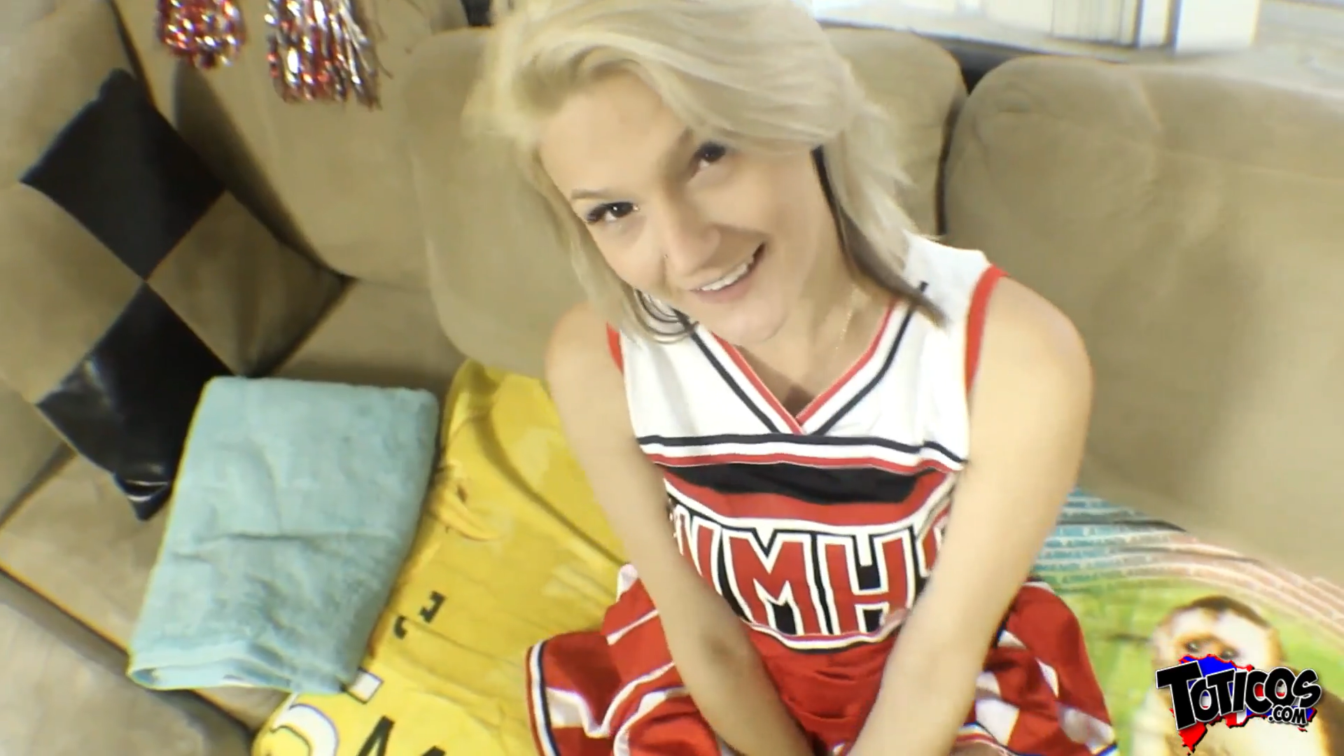 Petite blonde cheerleader enjoys interracial sex workout session with black cock trainer. Very fit and flexible Hope Harper takes dick in every position